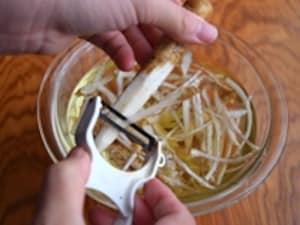 ごぼうの下処理のやり方!洗い方・皮むきの方法・アク抜きの時間を解説。やまでら くみこ のレシピ。