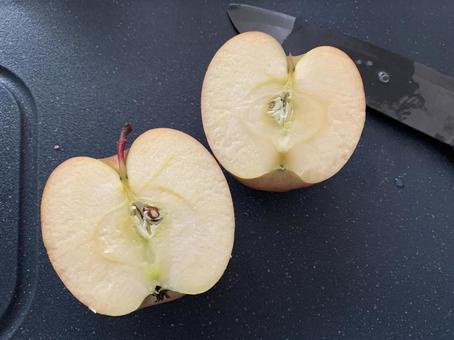 包丁で切ったりんごの断面の無料写真アーリーの素材屋さん。