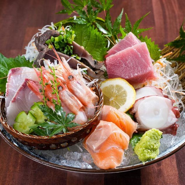 当店のおすすめ 刺身盛り合わせ5種<七厘や 笑>旬の魚介を七輪焼きで味わう海鮮居酒屋松山市のおすすめグルメなら旅色。