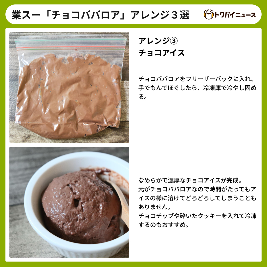 トクバイ お買い物情報アプリon X: "業務スーパーで人気のパックスイーツ「チョコババロア」。1kgもあるので食べ切るのが大変ですが、今回は最後まで美味しく食べられるアレンジレシピを3つご紹介します!業務スーパーhttps:t.co aECQlR5xH3"X。