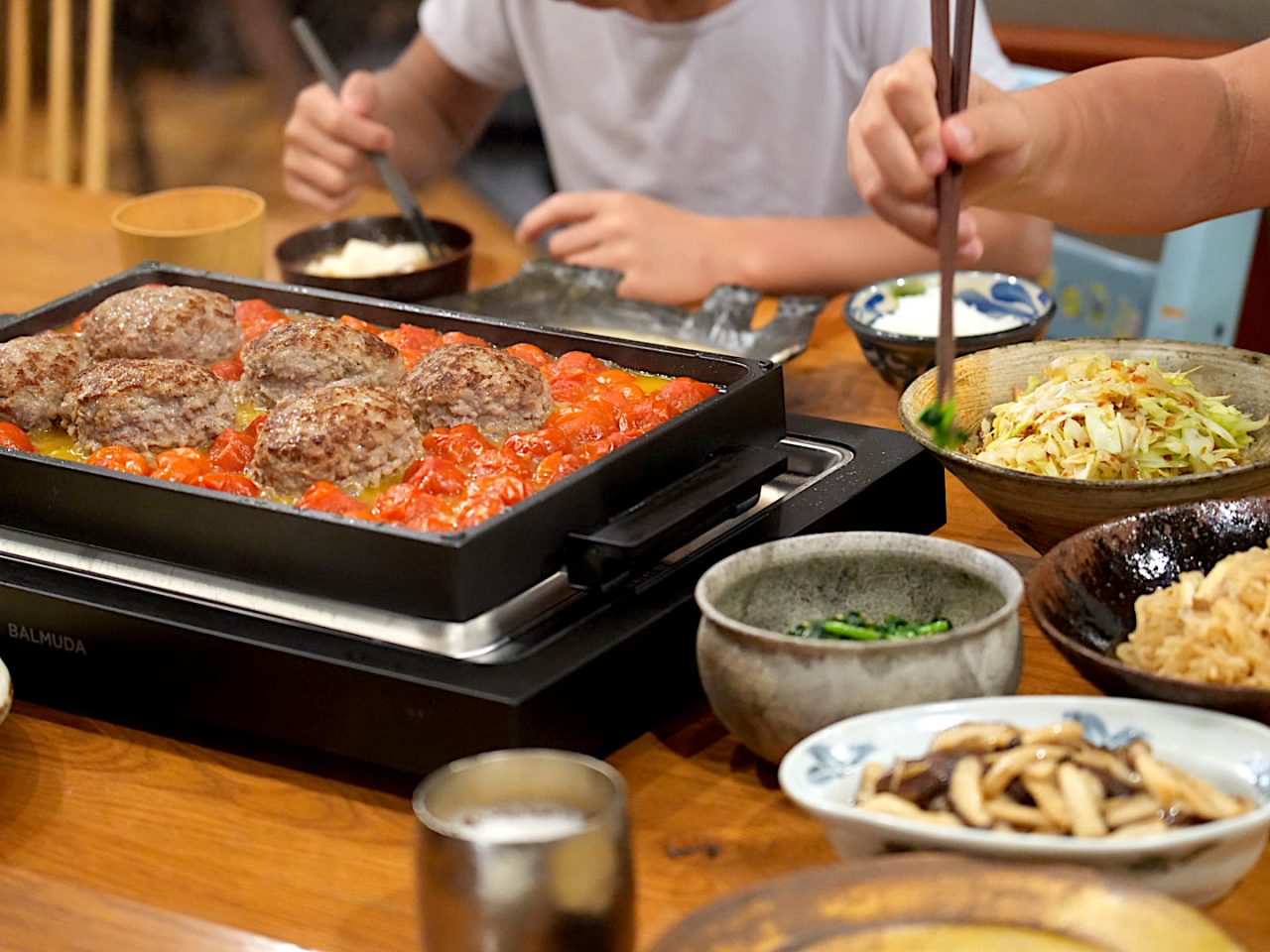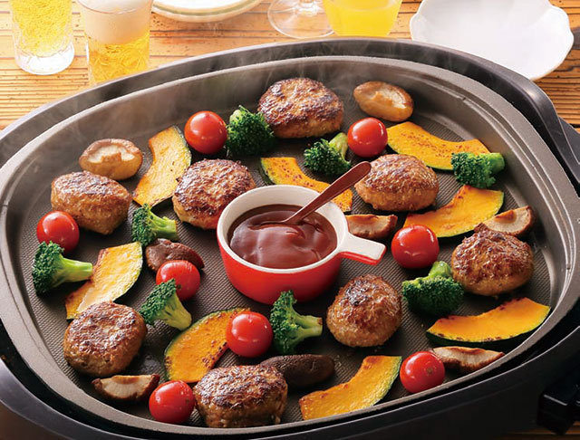ホットプレートでミニハンバーグeフレンズ ぱくぱく献立くん。