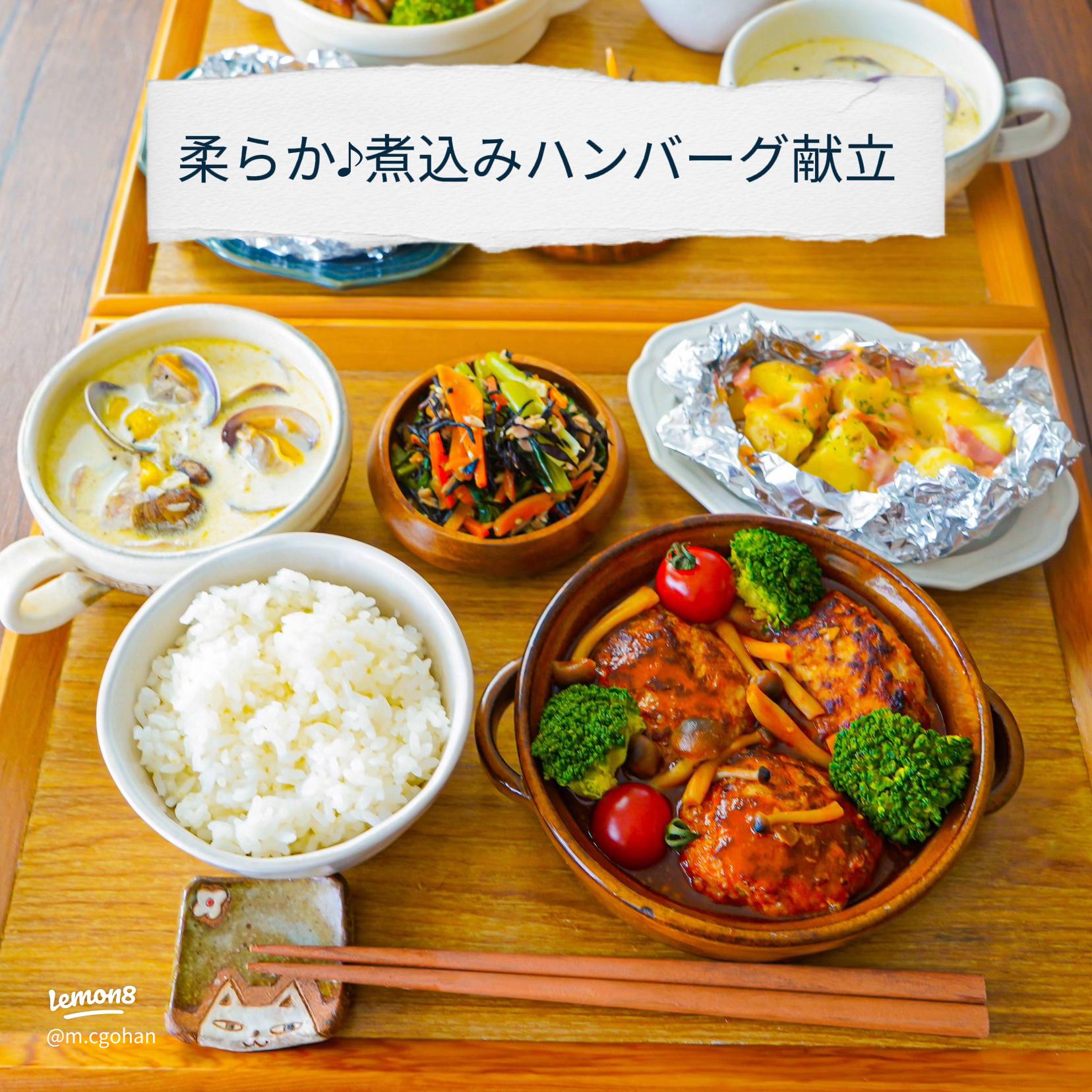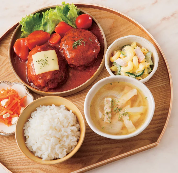 SNSで大人気のHidekaさんの献立!簡単なのにふわふわ「煮込みハンバーグ」レシピ 一汁三菜おぼん献立画像1 11- レタスクラブ。