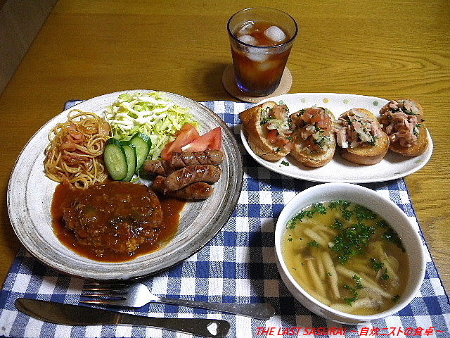 夕食 ハンバーグプレート・ブルスケッタ2種: THE LAST SASURAI ~自炊ニストの食卓~。