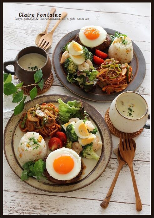 おうちカフェで楽しむハンバーグプレートのレシピ😊。