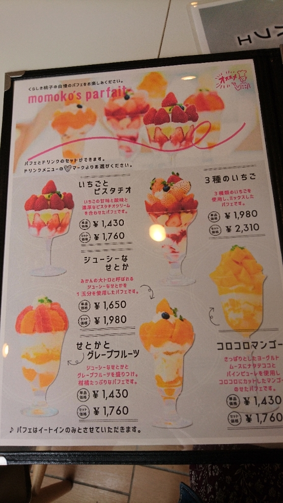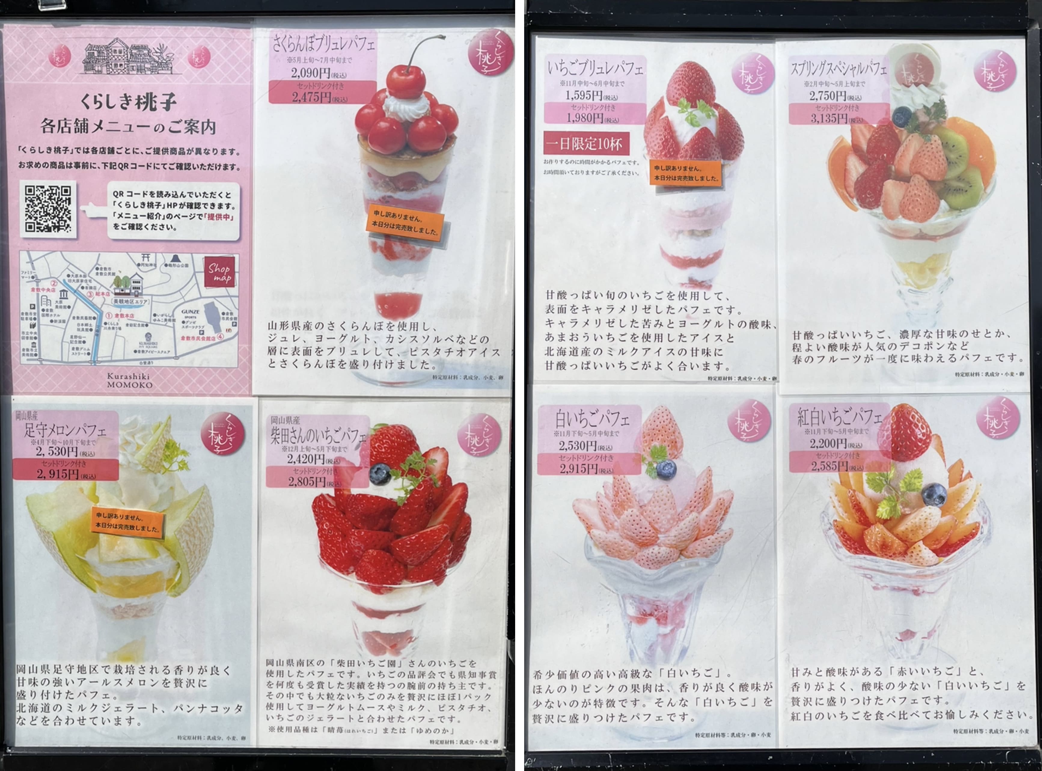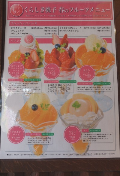 岡山県倉敷 くらしき桃子の桃パフェにご注意! 店舗によって違います!?スマホフォトグラファー ひなりんのごきげんさんブログ。