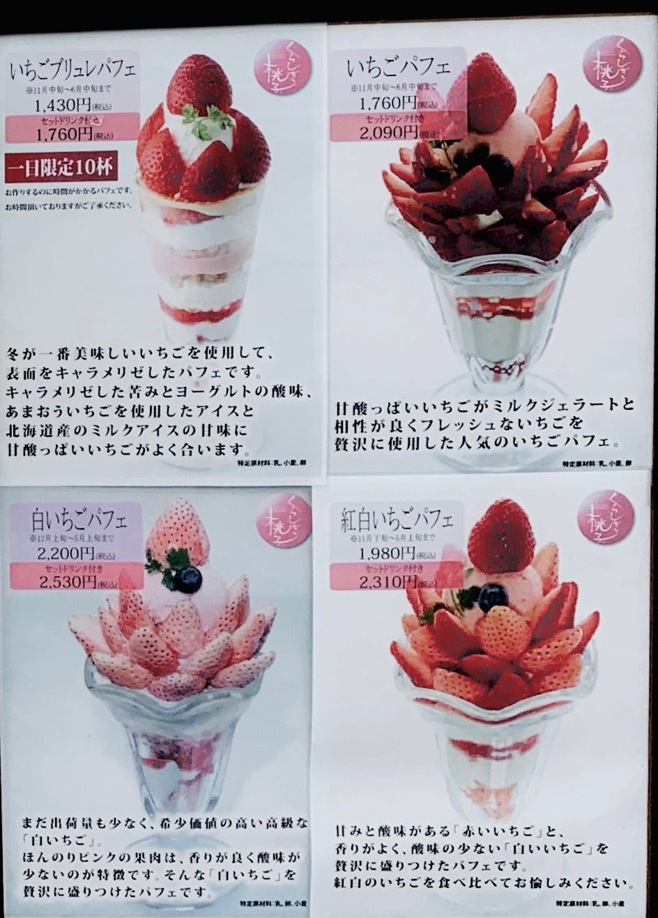 くらしき桃子総本店です。 本日もご来店いただきありがとうございました! いよいよ明日から いちごパフェ🍓 の販売がスタートします! 総本店では下記の メニューを販売します😋 =================================== ◎いちごパフェ🍓◎ ✨️1日10個限定✨️ いちご。