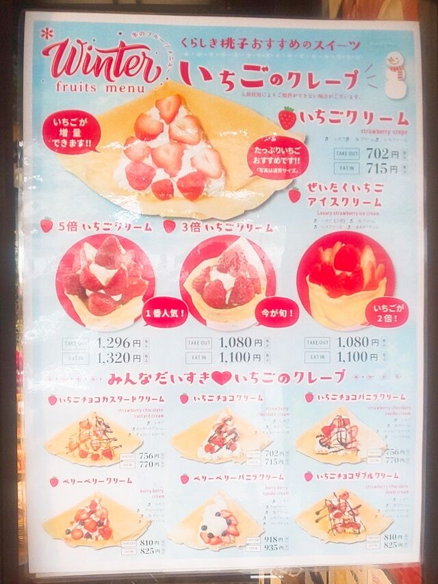 くらしき桃子倉敷中央店 季節のフルーツのクレープとパフェ 倉敷美観地区 - あははライフ。