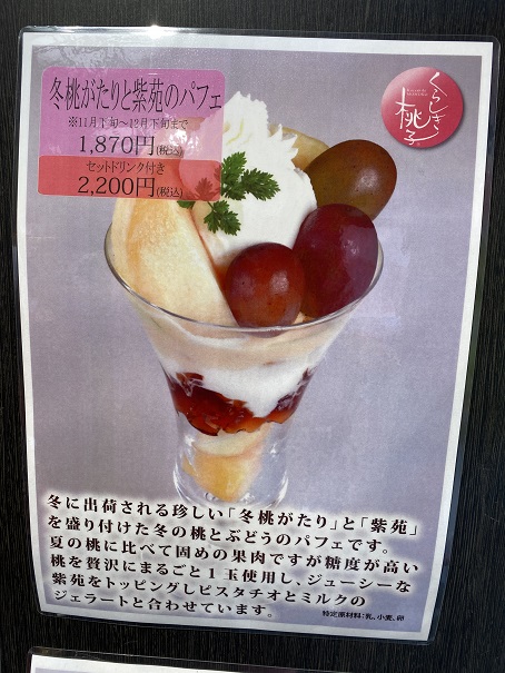 フルーツパフェ「くらしき桃子」倉敷市美観地区 岡山土産あり。