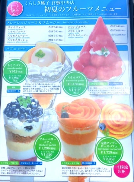 くらしき桃子 メニュー - 倉敷市、くらしき桃子 倉敷中央店の写真 - トリップアドバイザ。