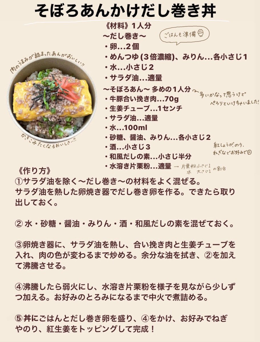 𝐚𝐧𝐧𝐤𝐨 on X: "たくさんの方にあんかけだし巻き卵丼作っていただいて嬉しいです😊 和風で甘めのそぼろあんがクセになる、そぼろ あんかけだし巻き丼も美味しいのでぜひ〜! https:t.co OM87xxLsql"X。