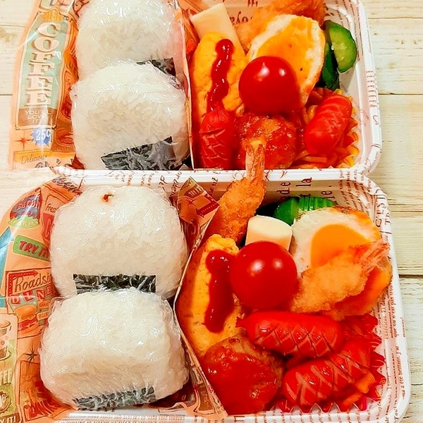 今日のお弁当✨ ちょっと大人なお子様ランチ弁当😋 今日は、タカギ産業様@mc_takagi の可愛い使い捨て弁当箱を使って、もうお子様ランチ を食べるお年頃ではない子供達に、ちょっと大人なお子様ランチ弁当😁 我が家の子供達にはご飯を入れるとちょっと量が足りないので。