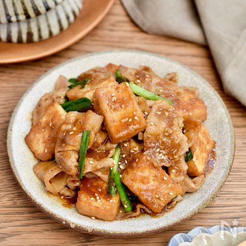 黄金みそだれでこく旨!\豚バラと厚揚げのみそ炒め。