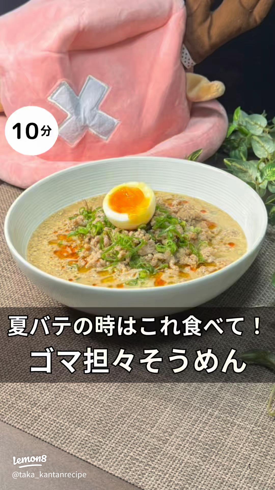レシピはここ👇,ピリ辛坦々そうめん , ===============, ■ 材料, ・ごまドレッシング 大さじ2, ・めんつゆ 大さじ2,・お水 大さじ2 濃かったら足してね , ・麻辣醤 小さじ1, ※ラー油でも代用可、プラス山椒, ・すりごま 大さじ1, ■ 作り方,❶お湯にそうめんを入れて、袋記載の規定の時間で600wレンチン,お湯もレンチンで準備できるよ , ,。