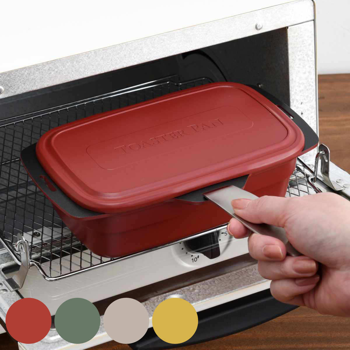 トースターパンプラス トースターパン 葛恵子 トースター調理器具 オーブントースター専用 鍋 炊飯 トースタークッキング スクエア オーブントースターフライパン カレー 煮物 焼き魚 蒸し料理 蓋付き レッド カーキ ミルクティ。