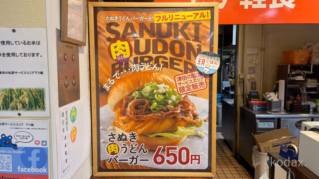 絶品さぬきうどんバーガー 津田の松原SA東かがわ市探検隊はらたにようへい。