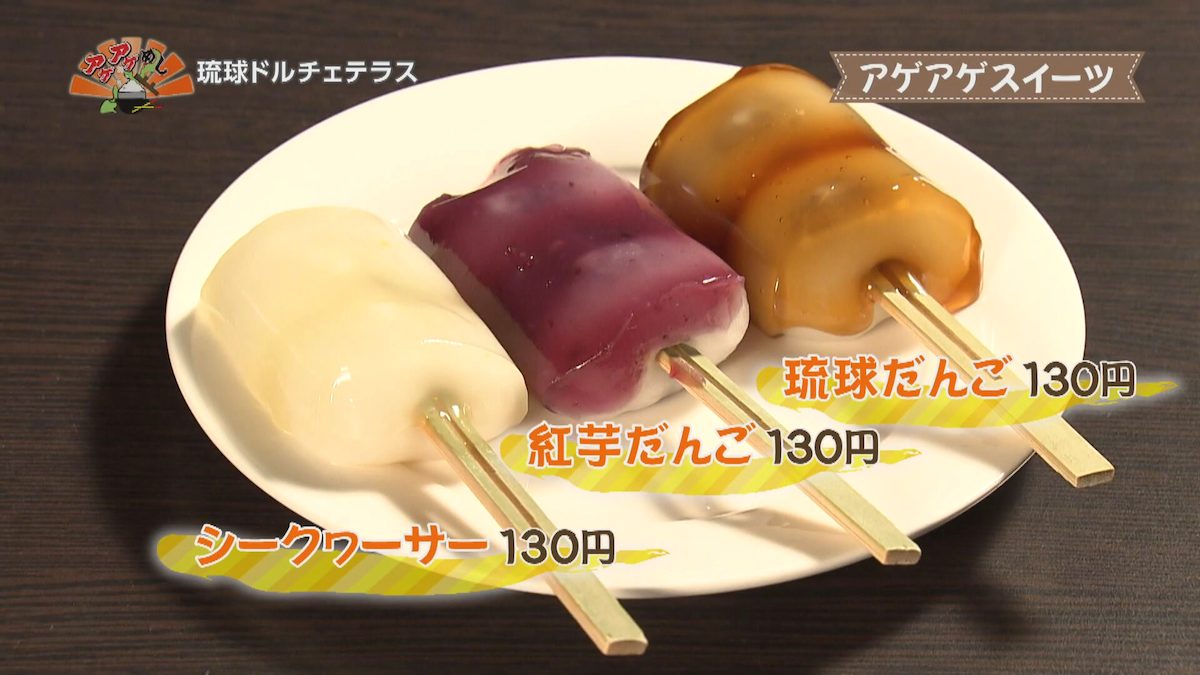 琉球ドルチェテラス on X: "絶対王者の琉球団子🍡 王道のみたらし味 爽やかなシークヮーサー味 みんな大好き紅芋味中の餡もそれぞれ違うんですよ💓 冷やして食べても固くならない!! ツルっともちもちのお団子🤩 ぜひ全種類食べて好みの味を見つけてみてください。