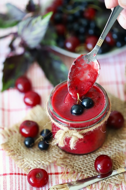 赤と黒スグリ。新鮮なベリーと赤すぐりのジャム。の写真素材・画像素材 Image 59712015。