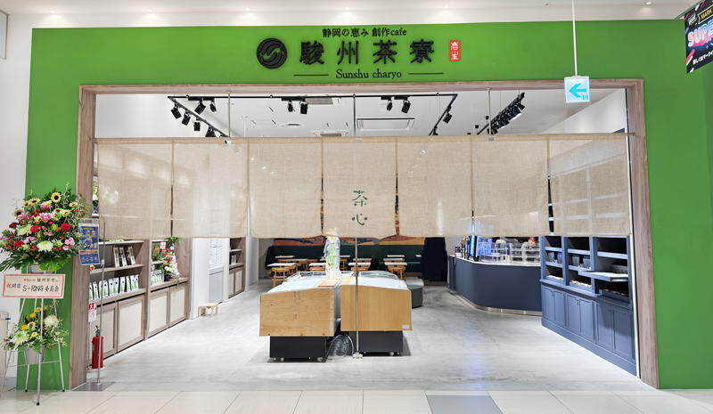 葵区柚木『静岡の恵み 創作cafe 駿州茶寮』さん! マークイズ静岡1階に2025年7月18日オープンの和カフェ! 静岡駅近くの居酒屋『食彩岩生』さん『府中かしわで』さんなどを手掛ける 岩生グループ 新店舗で初のカフェ事業とのこと! 静岡本山茶ベースの抹茶ラテなど豊富。