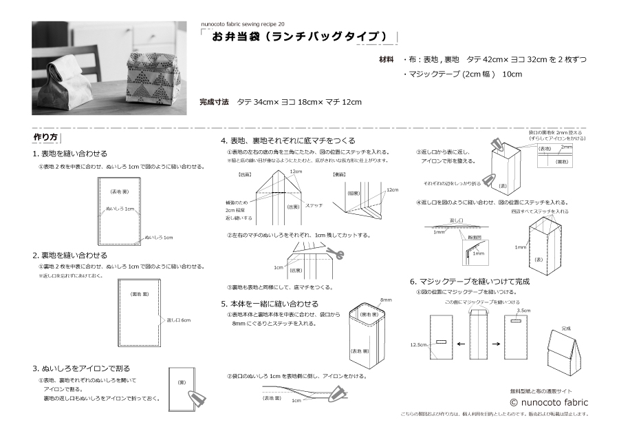 無料型紙 紙袋風ランチバッグの作り方 お弁当袋nunocoto fabric。