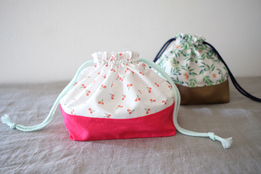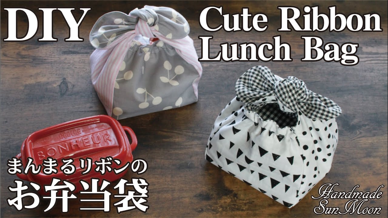 持ち手付きお弁当袋の作り方 裏地なし 巾着付きランチバッグ 簡単ハンドメイドDIY 入園・入学グッズSunMoon。