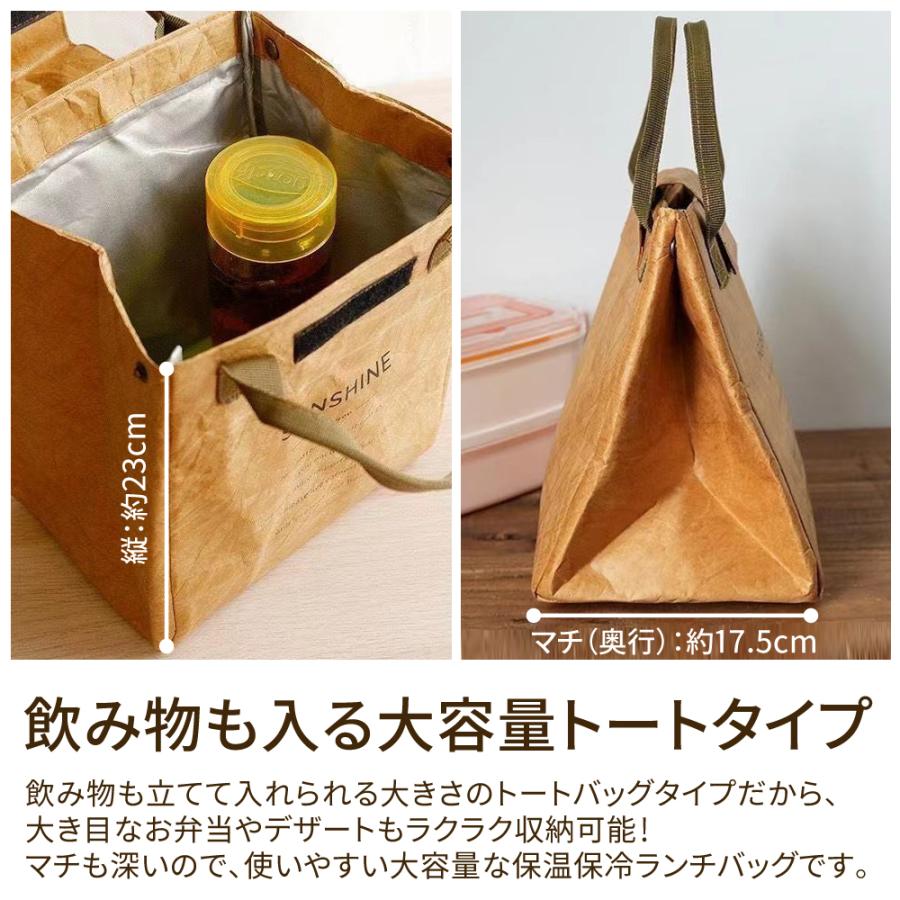 ランチバッグ 紙袋風 レトロ 保冷 ペットボトル 入る マチ 広い 防水 ファスナー 保温 大きめ メンズ レディース 大容量 保冷バッグ バックお弁当バッグ。
