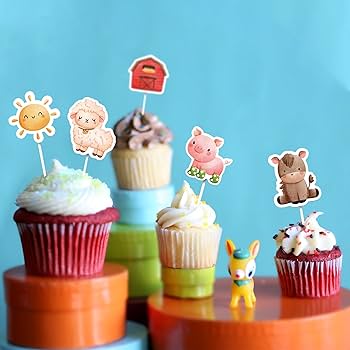 Amazon.co.jp: 農場の動物カップケーキトッパー、農場の動物ケーキトッパー、かわいい漫画の牛の豚、羊のカップケーキピック、動物 のテーマベビーシャワー、納屋の誕生日パーティーケーキデコレーション用品。 : 食品・飲料・お酒。