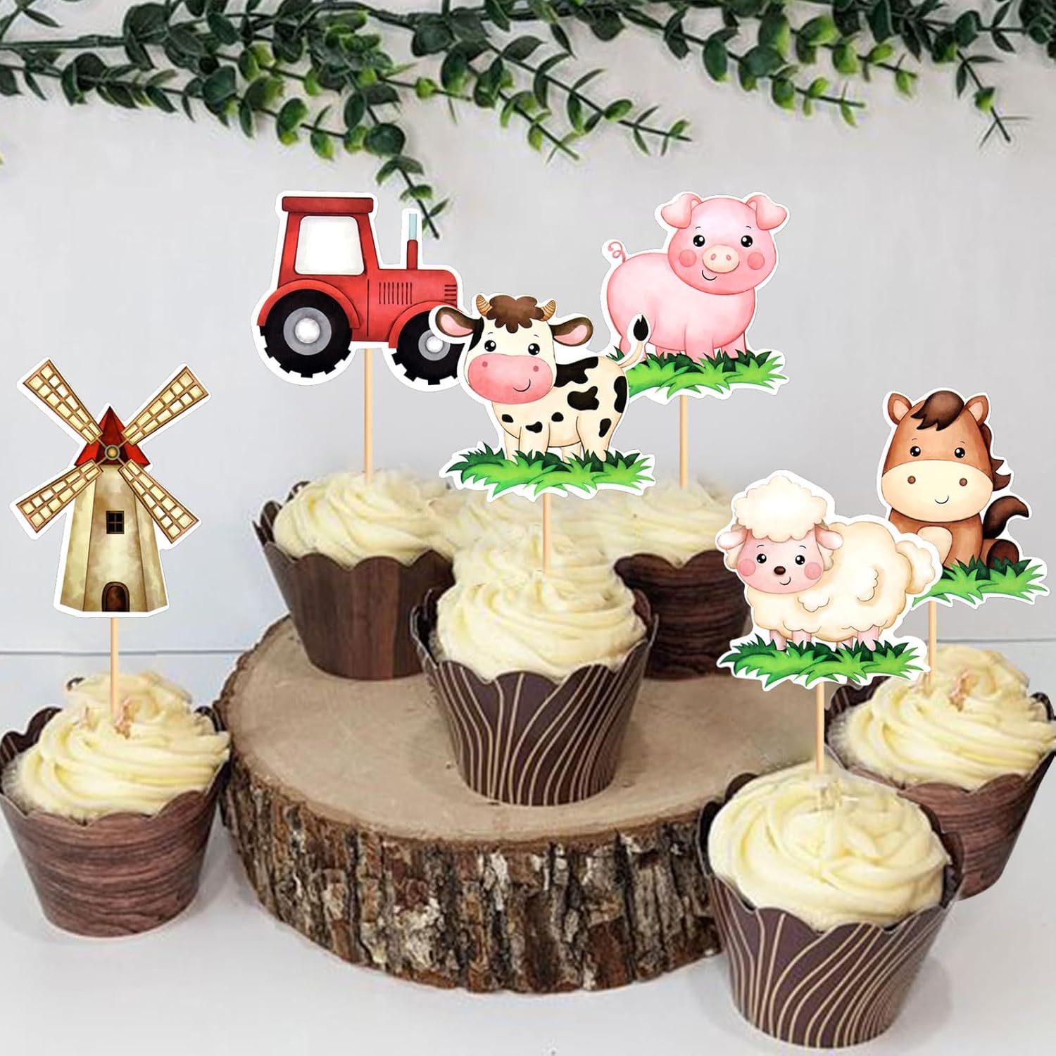 VARACL 25個 農場の動物 カップケーキトッパー 牛 鶏 羊 トラクター カップケーキ ピック ケーキトッパー ファームテーマ ケーキトッパーセットアニマル 動物 子供 誕生日 バースデー パーティー サファリ Hooty balloo フーティーバロー PARTY ANIMALS :ベビー&雑貨。