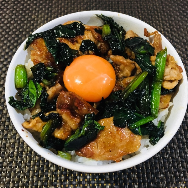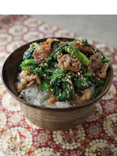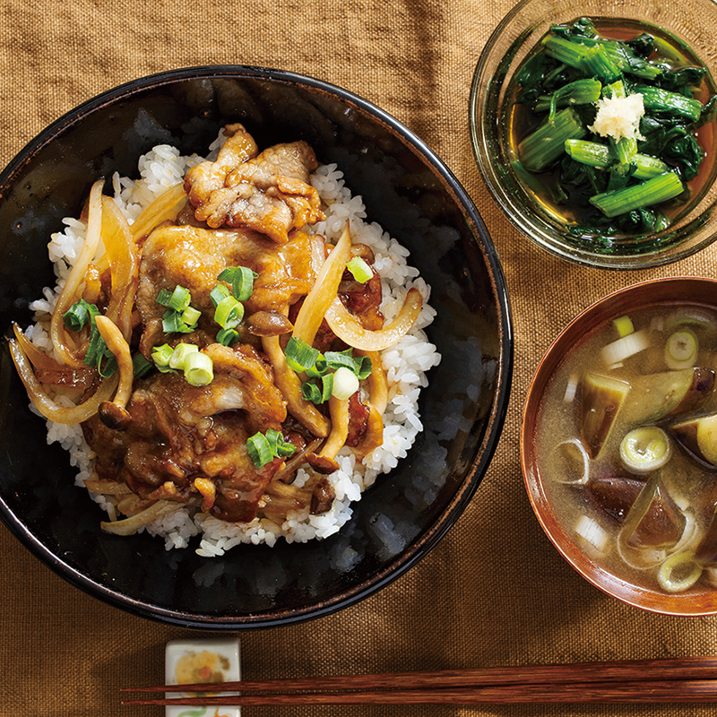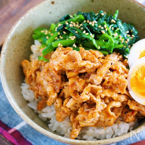 一味がアクセントに! 豚肉とほうれん草の甘みそ丼。