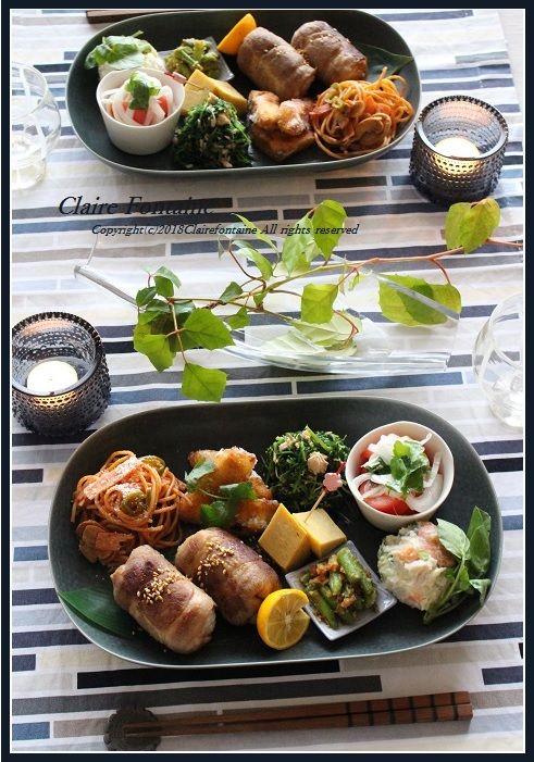 つくりおき活用!で、肉巻きおにぎり和ンプレート♪ : clairefontaine。