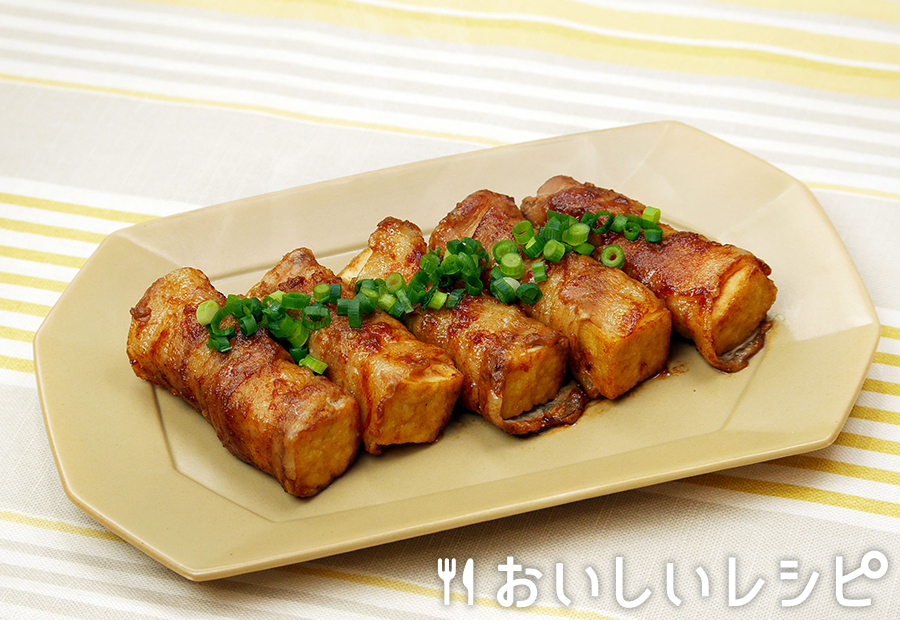 厚揚げの豚肉巻き レシピ焼肉のたれ・簡単・おつまみ・弁当。