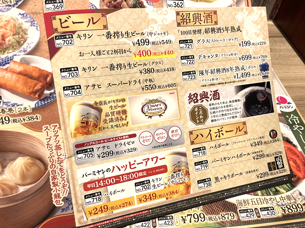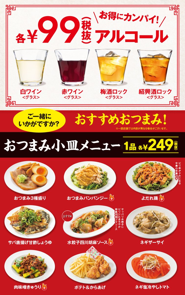 バーミヤン 公式on X: " 最新版 小皿メニュー&アルコールの おすすめの組み合わせせんべろ\20歳以上の大人の方へ🍻2⃣9⃣9⃣円 税込329円 から!バーミヤン に本格中華小皿が登場中🍑 お好きなアルコールと組み合わせて、 いろんなせんべろを楽しめ。