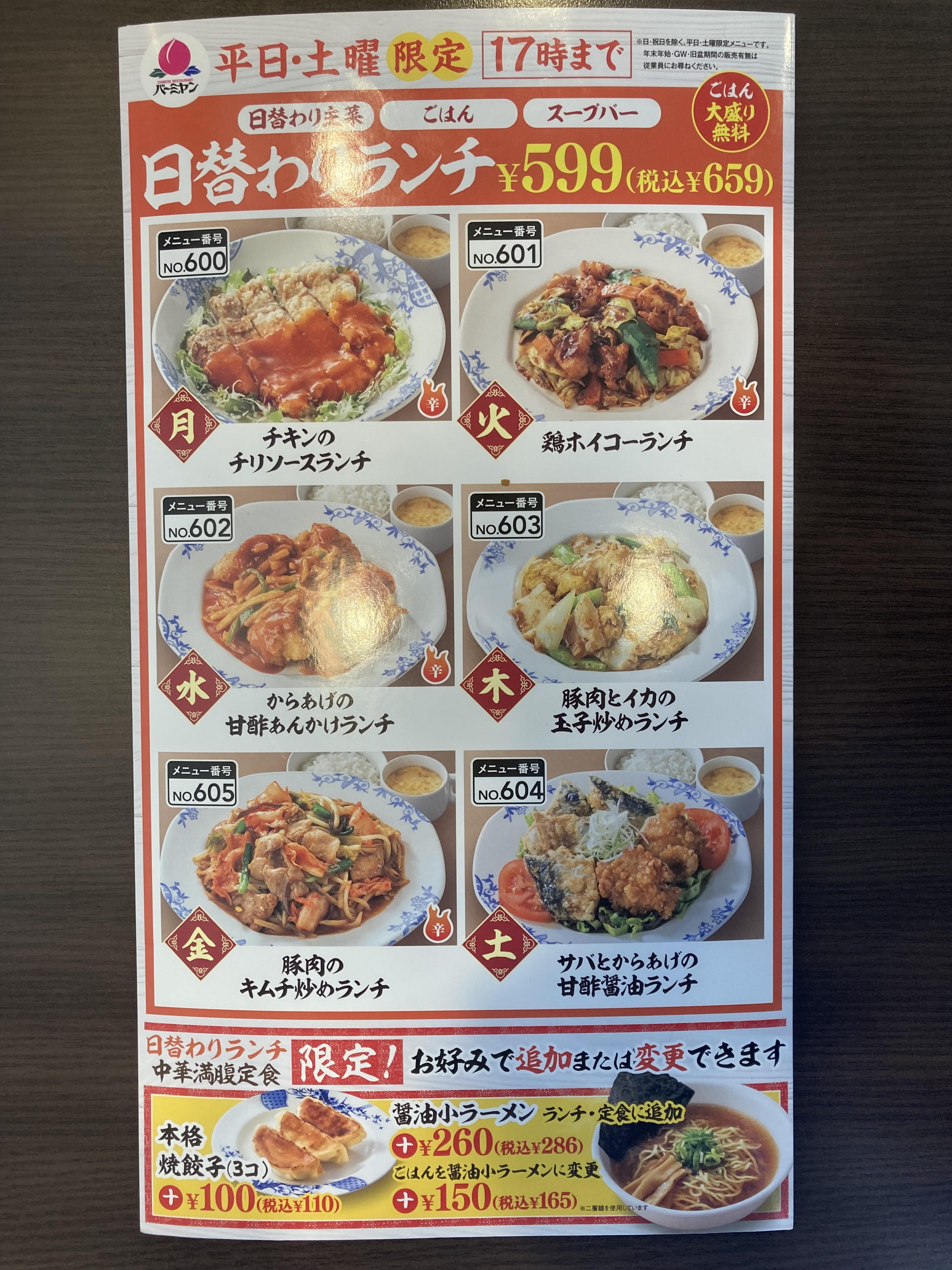 バーミヤン 公式on X: "バーミヤンの中華定食メニュー リニューアルしました😎 \ 平日限定! ボリューム満点の定食メニューをお手頃価格でどうぞ🍑ご飯ものか、麺類か 🤔 おかずもたくさんあるので迷ってしまいます💭 しかも白ご飯は大盛無料🤤🍚 昼も夜も。