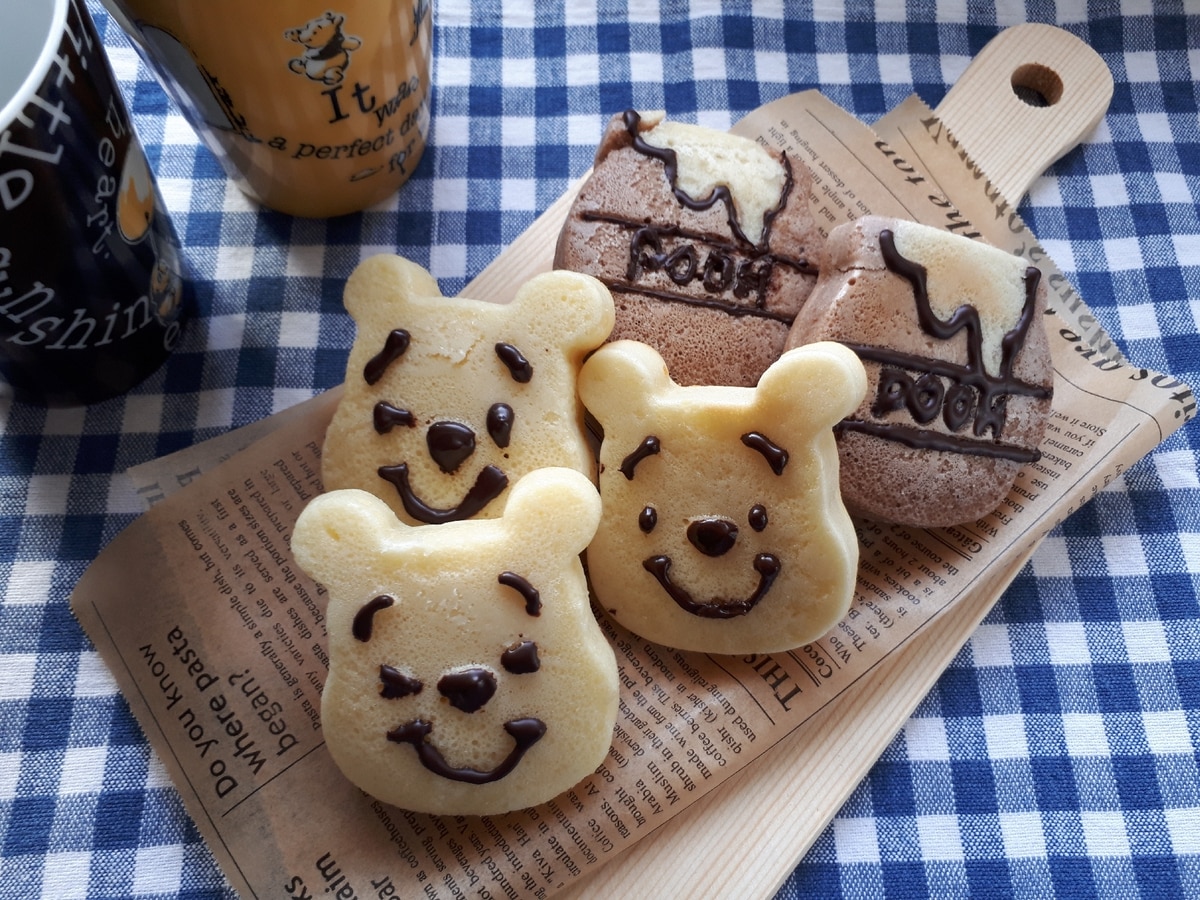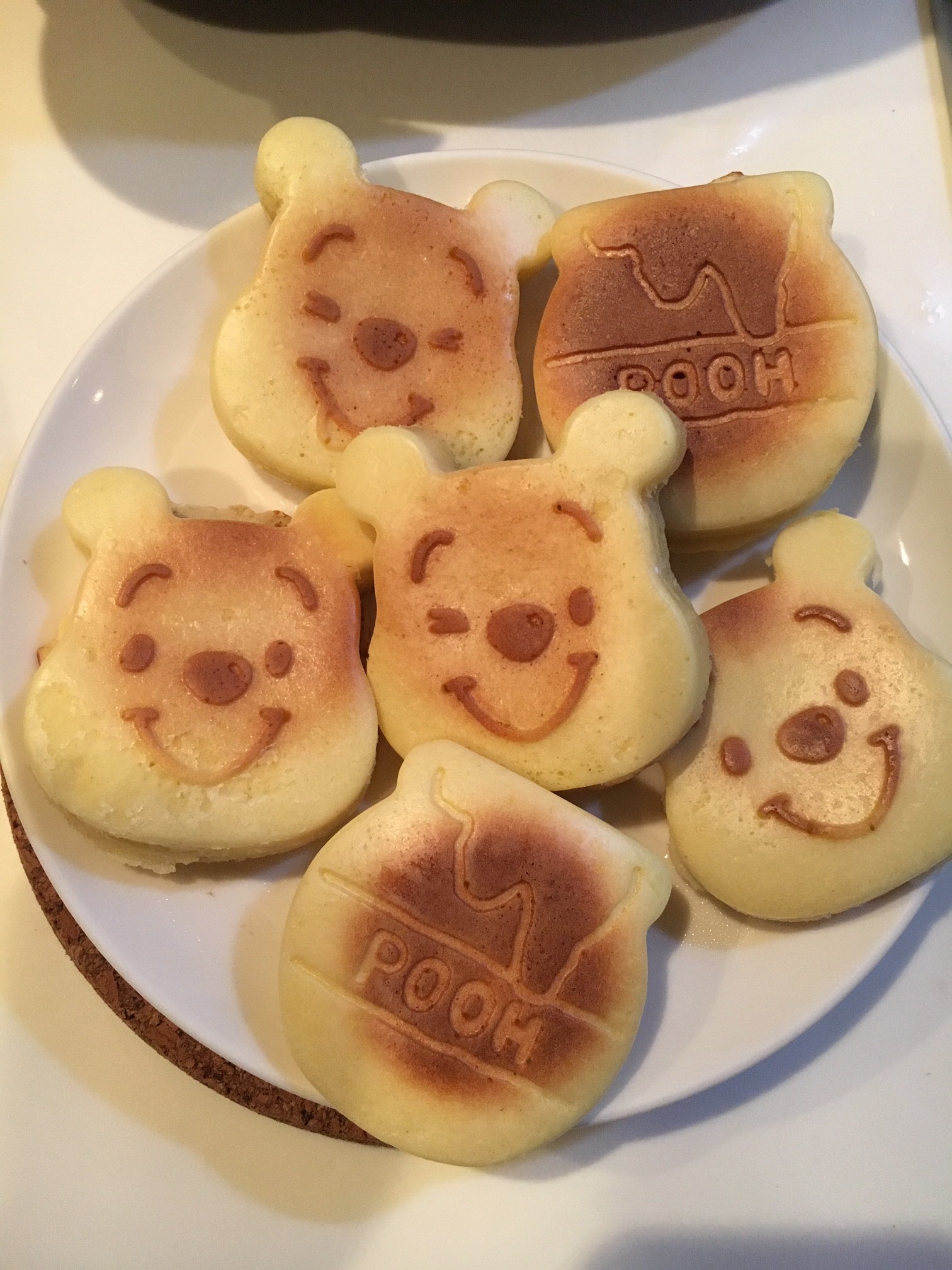 久しぶりにダイソーのシリコン型でくまのプーさんパンケーキを作ってみました🥞, 材料, ホットケーキミックス 120グラム ,ヨーグルト 120グラム , はちみつ 大さじ1 , 溶かしバター 15グラム , 卵 1個 , 材料を混ぜて、型に流し込み、,180度のオーブンで20分焼いて完成, YouTubeではロングバージョンの, レシピ動画を公開中です🥳,おじさんのおうちごはん🍴 ,。