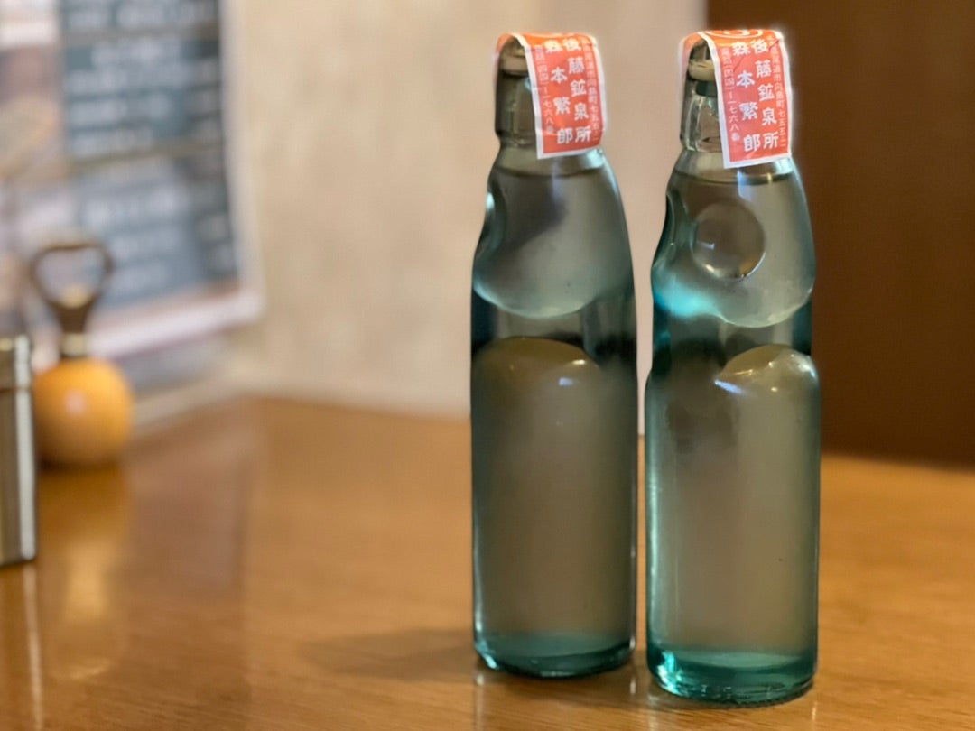 ヴィンテージラムネ 飲み口までオールガラス製のラムネ 今はとっくに生産中止となり世に出回っている瓶のみとなり絶滅に向かっている 瓶 の重み、ビー玉の音、味すべてが現代のラムネとは違う奥深さがある そんなヴィンテージラムネを飲みながらラムネにまつわる歴史や。