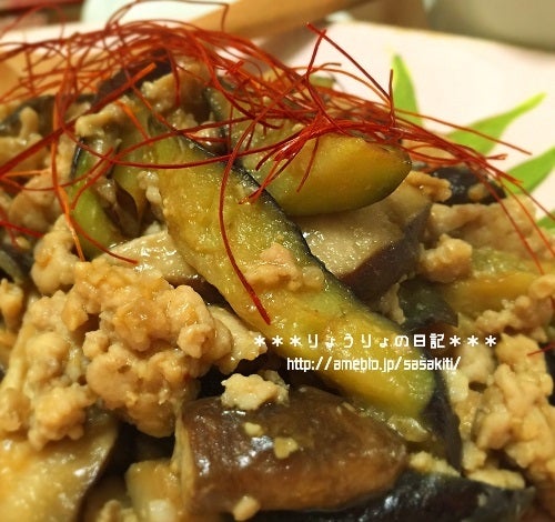 recipe 茄子と鶏ひき肉の味噌炒め**りょうりょの日記*ウチごはんと息子 etc。