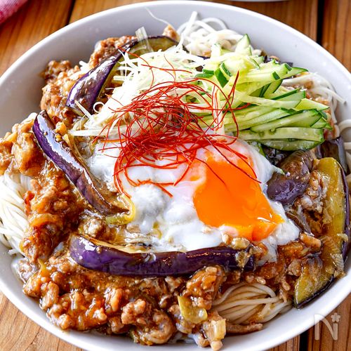 茄子とひき肉の肉味噌そうめん パパッとお手軽お昼ご飯♡。