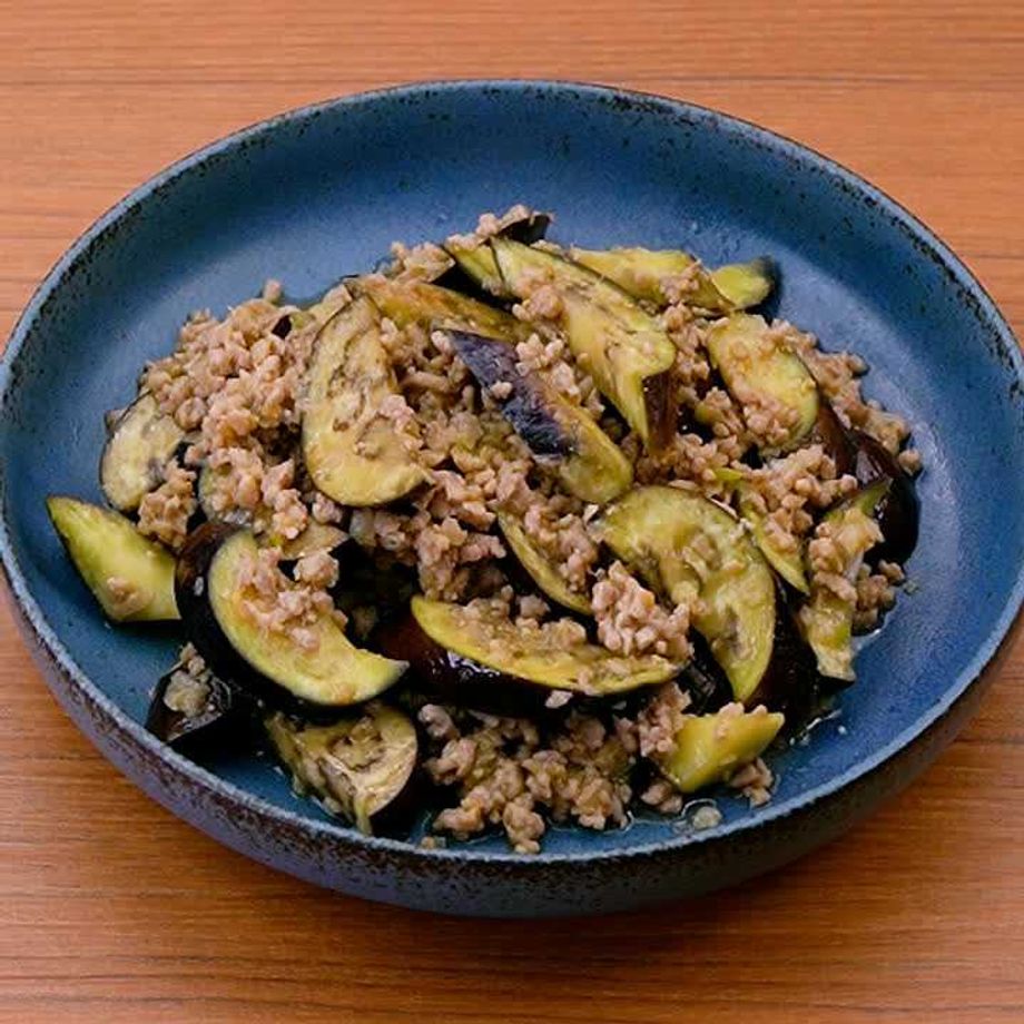 簡単10分でメインおかず!ご飯が進むなすとひき肉の甘辛炒め。
