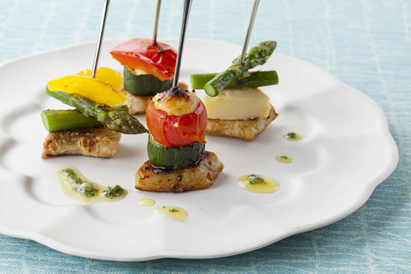 小岩井乳業株式会社しあわせレシピチーズ西京味噌漬けのめかじきと野菜のピンチョス。