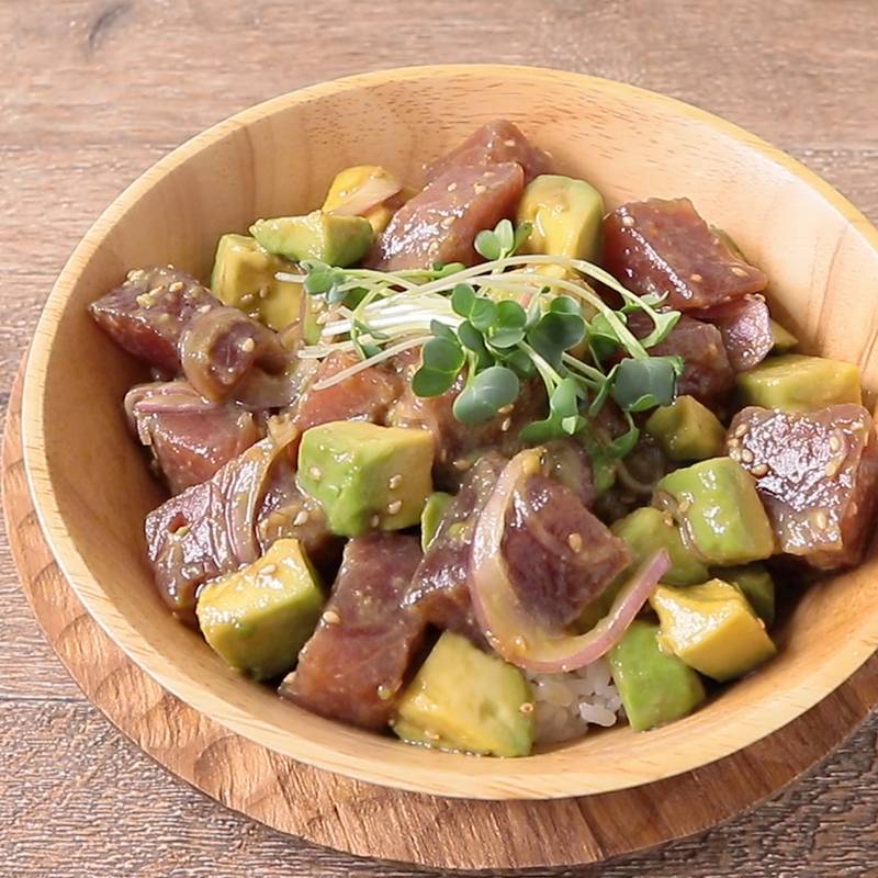 まぐろとアボカドのポキ丼 ごま油とだし風味で簡単にハワイ風。