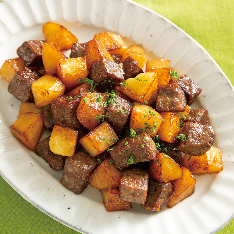 サイコロステーキとポテトのガリバタ醤油だいどこログ 生協パルシステムのレシピサイト。