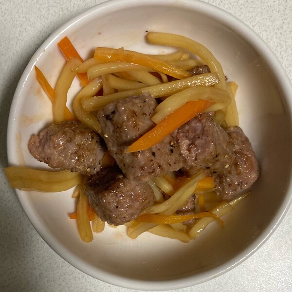 給料日前でも肉が食べたい! ひき肉のなんちゃってサイコロステーキママテナ。