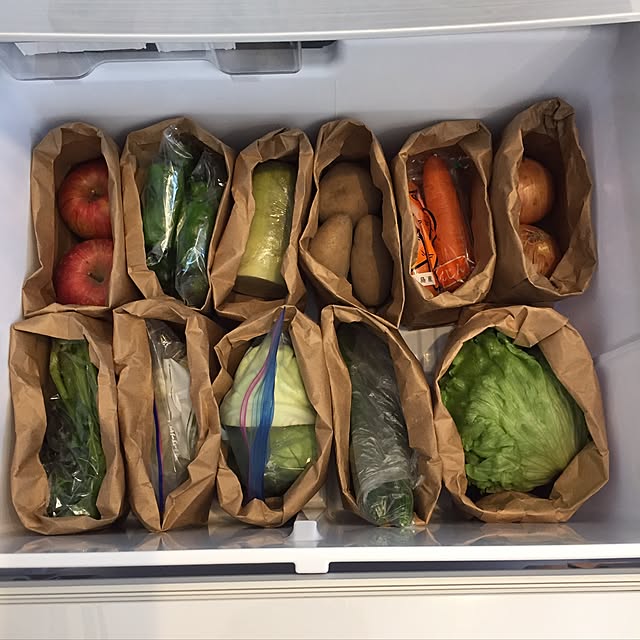 マルシェ風収納 ダイソー紙袋 野菜室収納 冷蔵庫の中 キッチンのインテリア実例 - 2020-06-17 05:03:12RoomClip ルームクリップ。