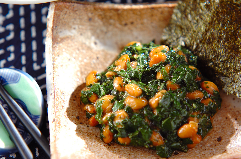 ネバネバで夏バテ予防、モロヘイヤと納豆昆布の夏和え。