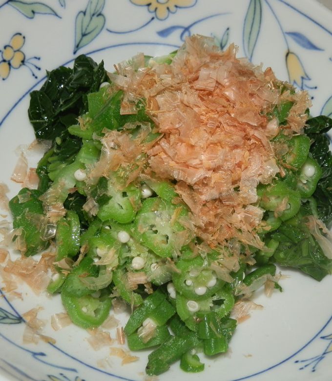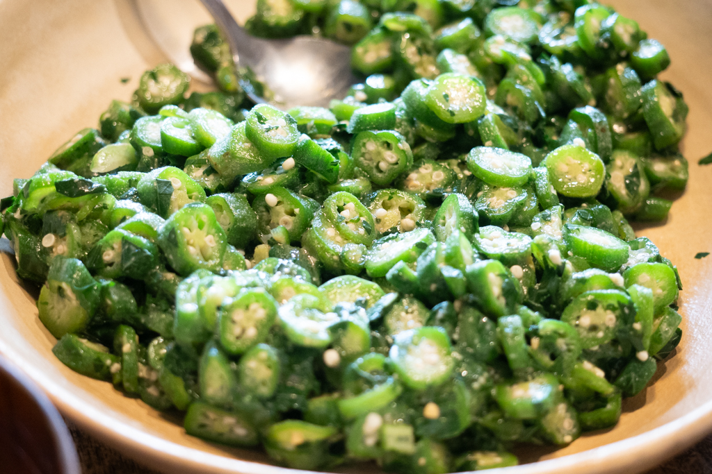 オクラとモロヘイヤのごま和えトキワさん家のキッチン。