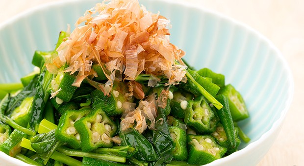 ネバネバ食材「モロヘイヤ・めかぶ・オクラ」で作るごはんのおともレシピ@Living アットリビング。