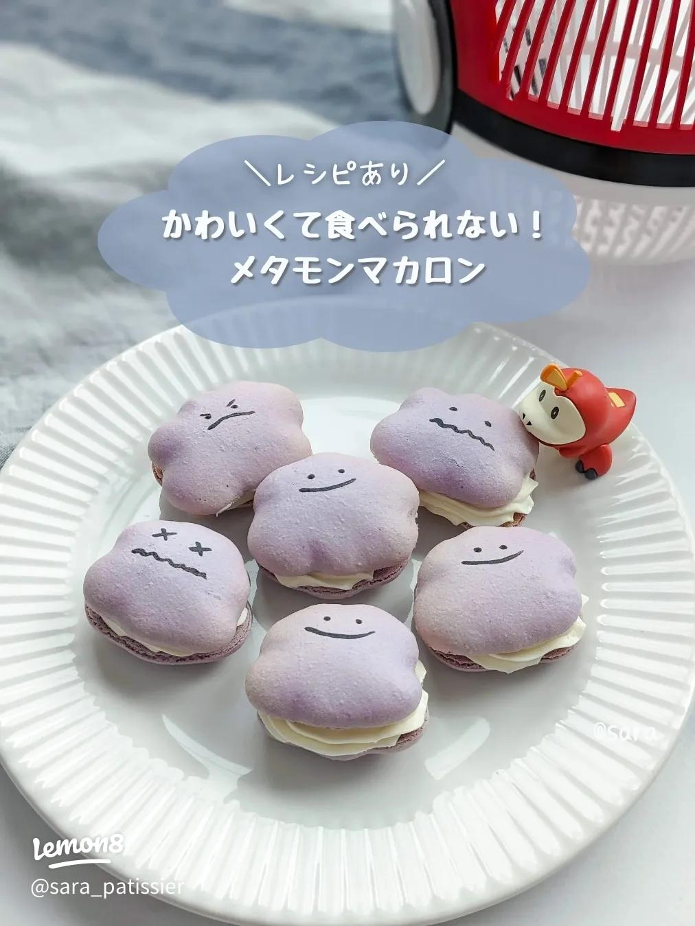 メタモンのカップケーキ🧁 最近ポケモンにハマりまくりのこども達へのバレンタインに💜 チョコレートのカップケーキの上にいちごのガナッシュを絞ってブルーベリーをトッピングしました🍓母の手作り喜んでくれるのもあと少しなのかなと思うと悲しいわ🥹ストロベリー。
