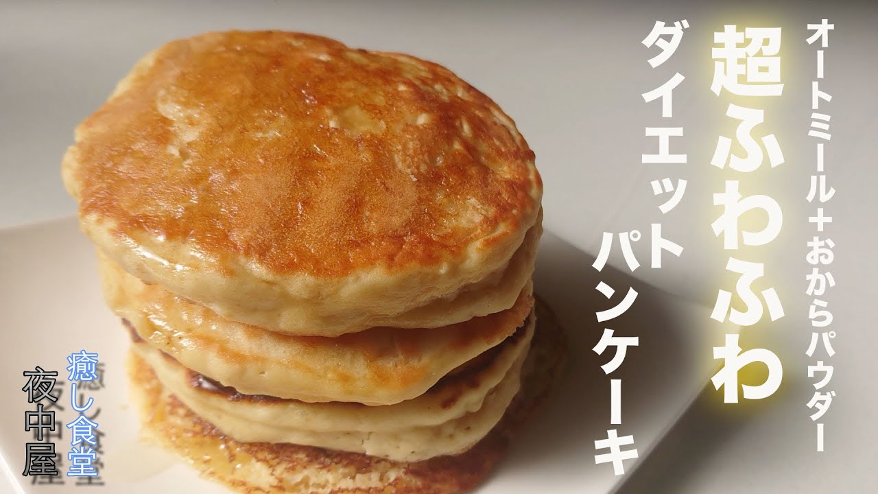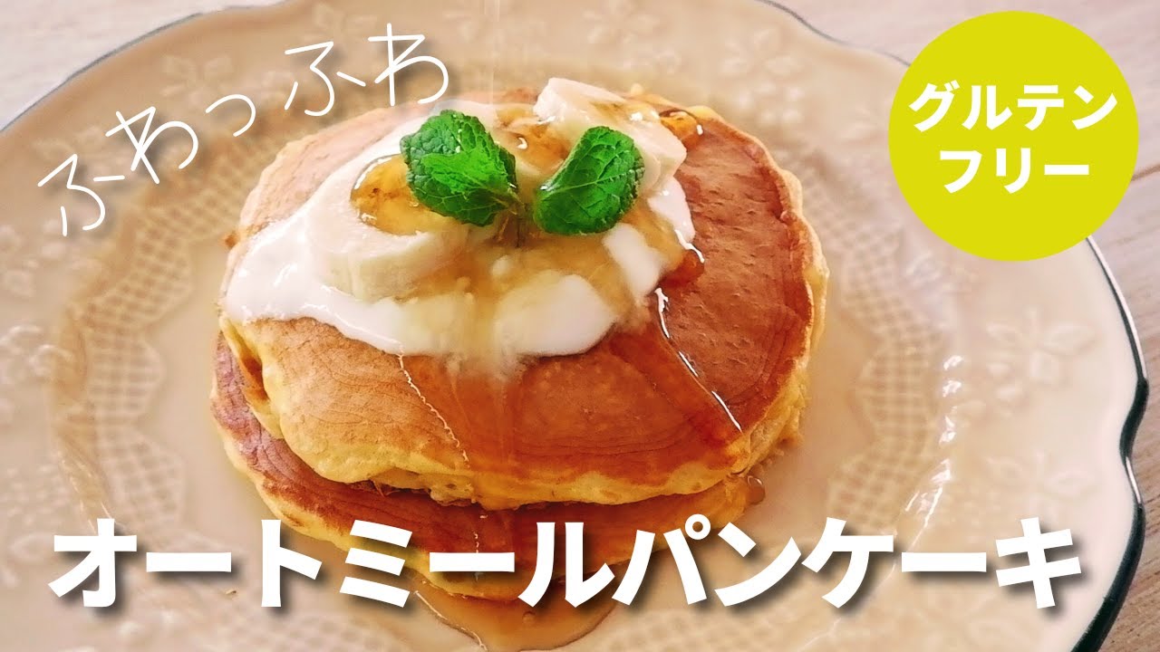 小麦粉なし オートミール100%ふわふわパンケーキの作り方グルテンフリーの簡単ダイエットスイーツレシピ。