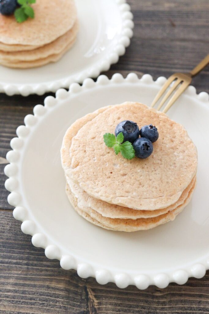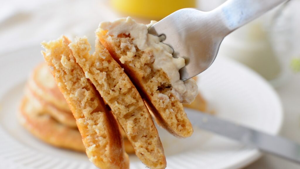 ベーキングパウダーなし・グルテンフリー ふわふわ口溶けなめらか♪無添加米粉パンケーキ元パティシエの砂糖・油ひかえめおやつ。