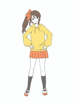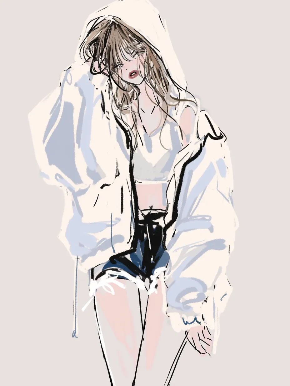 カジュアルなパーカーフード女子イラスト・フリー素材なら「シンテリ」。