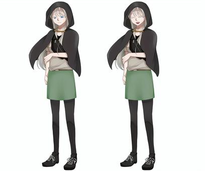 フードをかぶった女の子全身立ち絵・表情7種 キャラクター つなぐ。